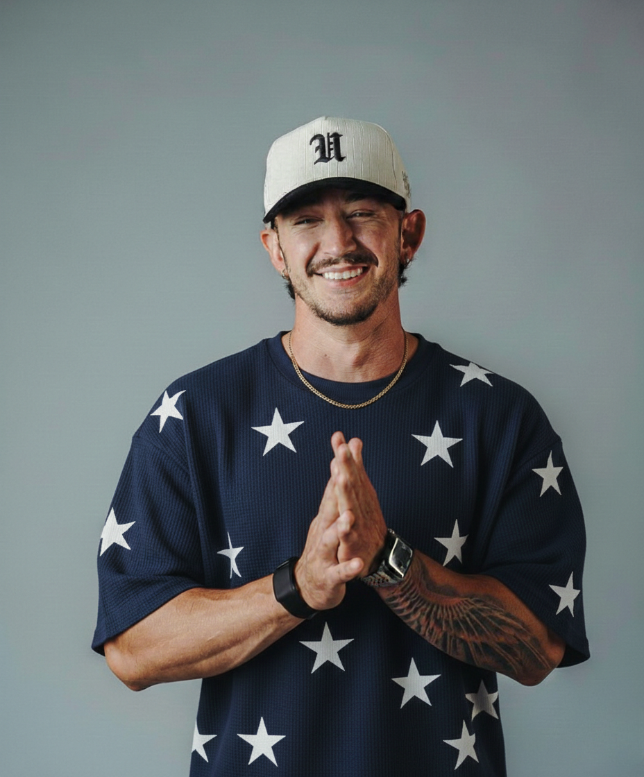 Stars Printed Waffle Knitted Dropshoulder Tshirt - NavyBlue