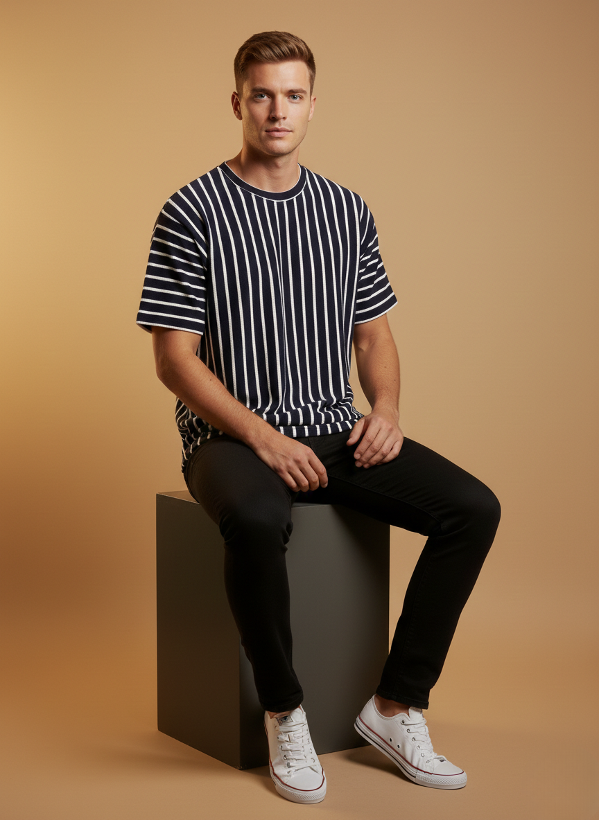 The Drift Stripe Knitted DropSHoulder Tee - Black